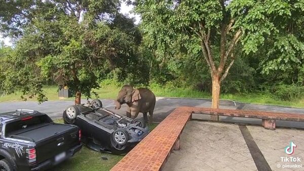 On August 14th, 2024, Thai national media reported a wild elephant overturned a touristâs car at Khao Yai National Park, an event that quickly went viral after being posted on TikTok.